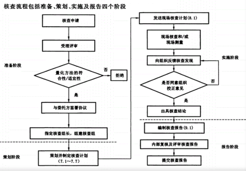 核查程序包括核查安排、建立核查技術(shù)工作組、文件評(píng)審、建立現(xiàn)場核查組、實(shí)施現(xiàn)場核查、出具《核查結(jié)論》、告知核查結(jié)果、保存核查記錄等八個(gè)步驟。