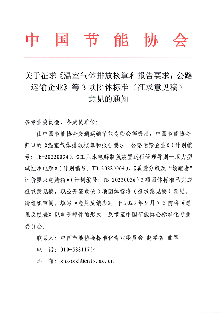 關(guān)于征求《溫室氣體排放核算和報告要求:公路運輸企業(yè)》等3項團(tuán)體標(biāo)準(zhǔn)(征求意見稿)意見的通知