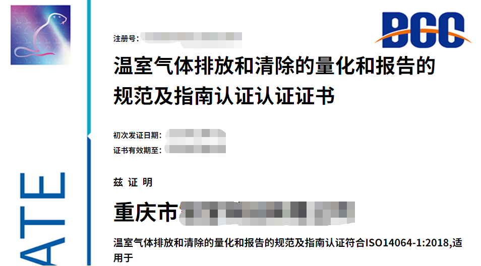 助力綠色轉(zhuǎn)型,BCC為重慶某公司頒發(fā)溫室氣體核查證書(shū)!