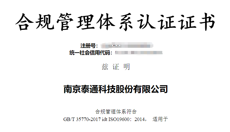 此次審核的通過(guò),使泰通科技更加規(guī)范合規(guī)管理過(guò)程、建立合規(guī)經(jīng)營(yíng)價(jià)值觀、有效防范合規(guī)風(fēng)險(xiǎn)、減少違法行為發(fā)生。