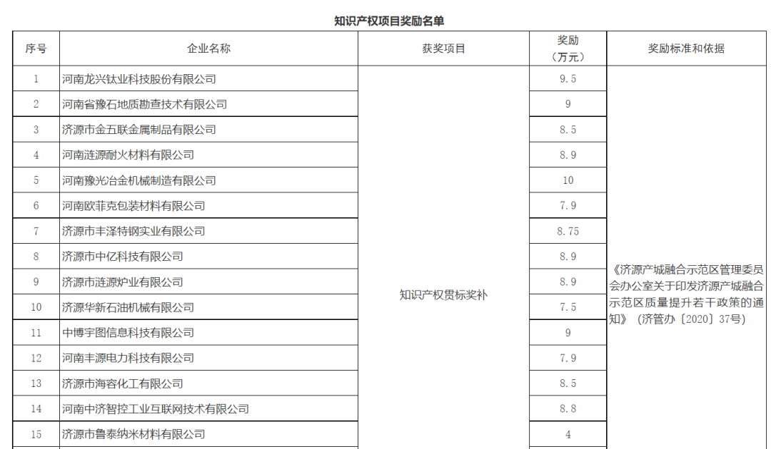 為進一步推進質量強市建設,優(yōu)化營商環(huán)境,激勵各單位、企業(yè)和個人開展質量提升工作,充分發(fā)揮財政資金對質量發(fā)展的促進和導向作用,全面提升質量水平,提高企業(yè)核心競爭力,加快培育競爭新優(yōu)勢,建設創(chuàng)新型高品質現代化示范區(qū),按照《中共濟源市委濟源市人民政府關于開展質量提升行動的實施意見》(濟發(fā)〔2018〕22號)和《濟源產城融合示范區(qū)管理委員會辦公室關于印發(fā)濟源產城融合示范區(qū)質量提升若干政策的通知》(濟管辦〔2020〕37號)的規(guī)定,決定對取得2021年度質量成果的單位、企業(yè)和個人予以通報獎勵補助。